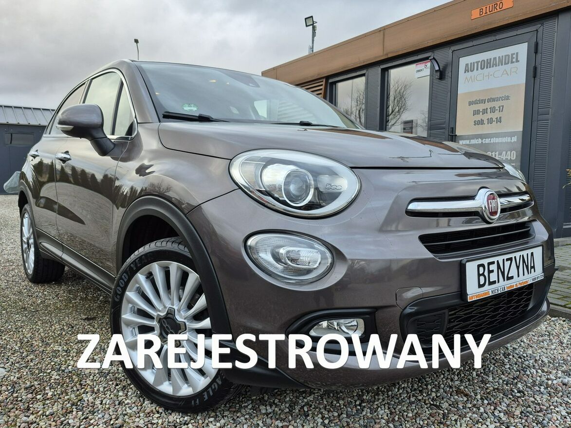 FIAT 500X Z 2015 ROKU PRODUKCJI Z FAJNYM SILNIKIEM 1.4 BENZYNA O MOCY 140KM. SAMOCHÓD Z MAŁYM PRZEBIEGIEM JEDYNE 73 000km, POTWIERDZONYM DOKUMENTAMI.AUTO W BOGATEJ WERSJI WYPOSAŻENIA, STEROWANA KIEROWNICA, KLIMATRONIC, TAPICERKA PÓŁ SKÓRZANA, NAWIGACJA, TEMPOMAT, ŚWIATŁA KSENONOWE, ŚLICZNY KOLOR JASNY BRĄZOWY METALIC, ALU-FELGI 18 Z OPONAMI LETNIMI.